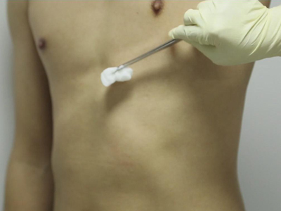 用酒精除去皮膚油脂,使其更好地附著(zhù)。